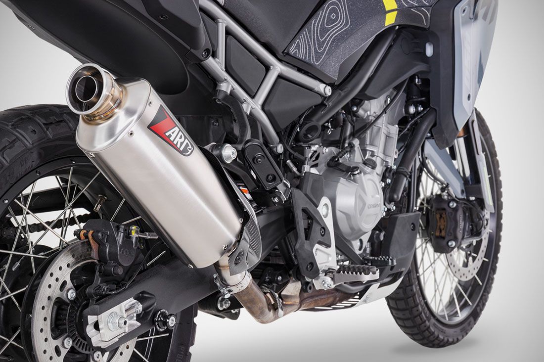 TheCFMOTO 450MT exhaust, renowned for its versatility and dynamic performance, is now ready to be further enhanced with the Zard slip-on. Designed to bring out the full potential of this best-selling motorcycle, it ishandcrafted in Italy using only the finest materials. Available in bothracing andE5+ homologated versions, the slip-on is made of AISI 304 stainless steel, featuring a satin finish and a carbon fiber heat shield. The slip-on delivers exhaust a significant weight reduction: -1.2 kg, for the racing version and -1.1 kgfor thehomologated version, along with a performance increase of+1.4 hp, for theracingversion and +1 hp for thehomologatedone - all enhanced by the distinctive Zard sound. The slip-on for the 450MT requires no ECU remapping, is easy to install, andis ready to usestraight out of the box.