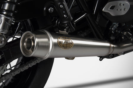 The Zard Slip-Ons for the Triumph Bonneville T100 give a more aggressive look and a quicker engine response, crafted with Italian artisanal quality. Entirely handmade in Italy, the kit consists of two AISI 304 stainless steel silencers with stainless steel end caps. Available in satin, Cerakote black and polished finishes, they stand out for their extreme lightness (-9.9 kg (-21.8 lbs) compared to stock) and a distinctive sound that enhances the character of the British twin-cylinder. The silencers ensure increased performance while giving the bike a sportier design. Available in Euro 5 approved or racing versions. Compatible with Bonneville T120 (20212023)