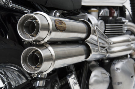 The High full kit for the Triumph Bonneville T120 is entirely handmade in Italy. It consists of headers and silencers made from AISI 304 stainless steel. Available in satinor Cerakoteblackfinishes, it stands out for its lightweight construction, -8.2 kg (-18.1 lbs) compared to the stock exhaust, a solid power increase and a distinctive sound that enhances the authentic character of the British twin-cylinder engine. Its design gives the bike a sportier appearance, ideal for those looking for a more dynamic aesthetic. This product is not approved for road use. IMPORTANT NOTE: Proper installation requires the Zard right side panel (included in the brushed aluminum version) and the left side panel available as anoptional. The black version of the exhaust retains the stainless steel heat shield grillCompatibility: Bonneville T120 (20162020)