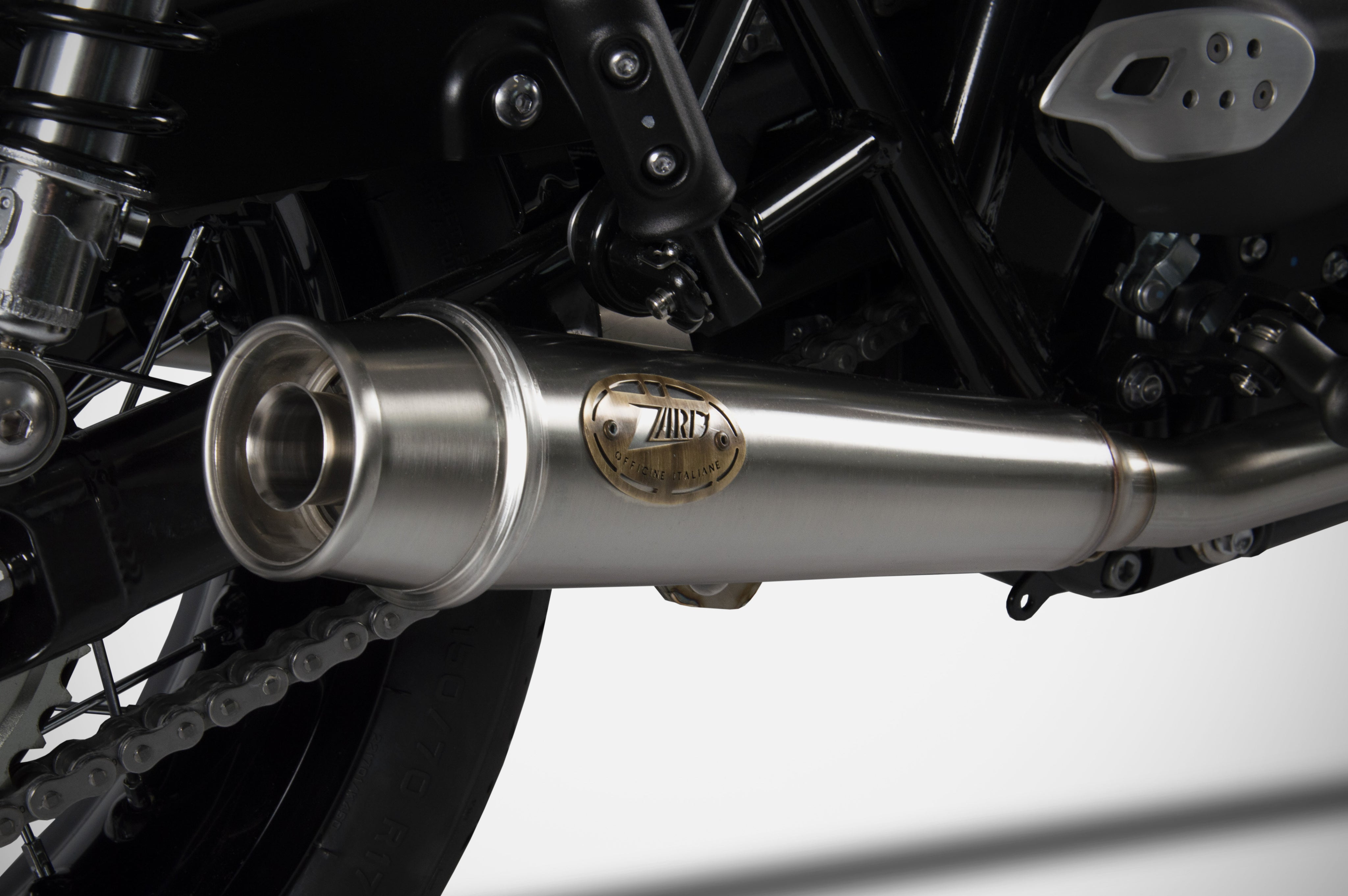 The Zard Slip-Ons for the Triumph Bonneville T120 give a more aggressive look and a quicker engine response, crafted with Italian artisanal quality. Entirely handmade in Italy, the kit consists of two AISI 304 stainless steel silencers with stainless steel end caps. Available in satin, Cerakote black and polished finishes, they stand out for their extreme lightness (-9.9 kg (-21.8 lbs) compared to stock) and a distinctive sound that enhances the character of the British twin-cylinder. The silencers ensure increased performance while giving the bike a sportier design. Available in Euro 5 approved or racing versions. Compatible with Bonneville T100 (20212023)