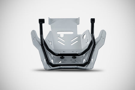 The Sabbia engine guard has been designed directly on the Ducati DesertX to offer optimal protection to all the mechanical parts of the powerful twin-cylinder engine. The aluminum alloy with which it is constructed offers excellent impact resistance and, despite its considerable thickness, guarantees optimum lightness. To increase resistance even in the most demanding situations, the Sabbia engine guard is not anchored directly to the engine. In fact, the Zard engineers have created a tubular stainless-steel frame, designed specifically for the Ducati DesertX, which works as a support for the engine guard using the fixing points present on the bike. CURRENTLY NOT COMPATIBLE WITH DUCATI CRASHBAR, DUCATI CENTRE STAND, DUCATI ENGINE GUARD PLATE KIT.