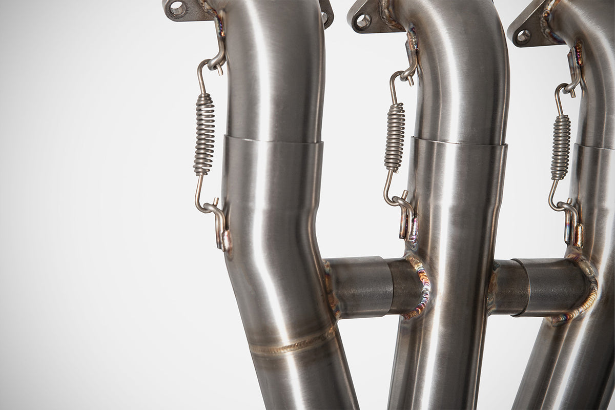 The exhaust headers for the Triumph Speed Triple 1200 RS/RR are designed for those looking to enhance engine performance with a product of the highest quality and exclusive design. Created exclusively for the Zard slip-on, they are entirely handcrafted in Italy by Officine Italiane Zard and represent excellence in Italian artisanal engineering. The 3-into-1 headers, without a catalytic converter, are made of AISI 304 stainless steel, ensuring maximum strength and durability even under extreme conditions, with a design optimized for perfect exhaust gas flow. This component is suitable for track use and provides a significant increase in power and improved throttle response, while maintaining a bold and sporty sound that perfectly matches the aggressive character of the Speed Triple 1200 RS/RR. Installation is simple and requires no structural modifications to the bike. Thanks to a weight saving of -2.8 kg (-6.2 lbs), it improves agility and responsivenessideal for those seeking an uncompromising upgrade. WARNING: to use with the Euro 5 homologated Zard silencer for the Speed Triple 1200 RR/RS, it is necessary to purchase the stainless steel link pipe kit (ZTP100S20R). NOTE: the headers are designed to be used exclusively with Zard racing and Euro 5 silencers. Zard offers the dedicated UpMap ECU to the Speed Triple 1200 RS/RR products, tailor-made to ensure a significant performance increase.