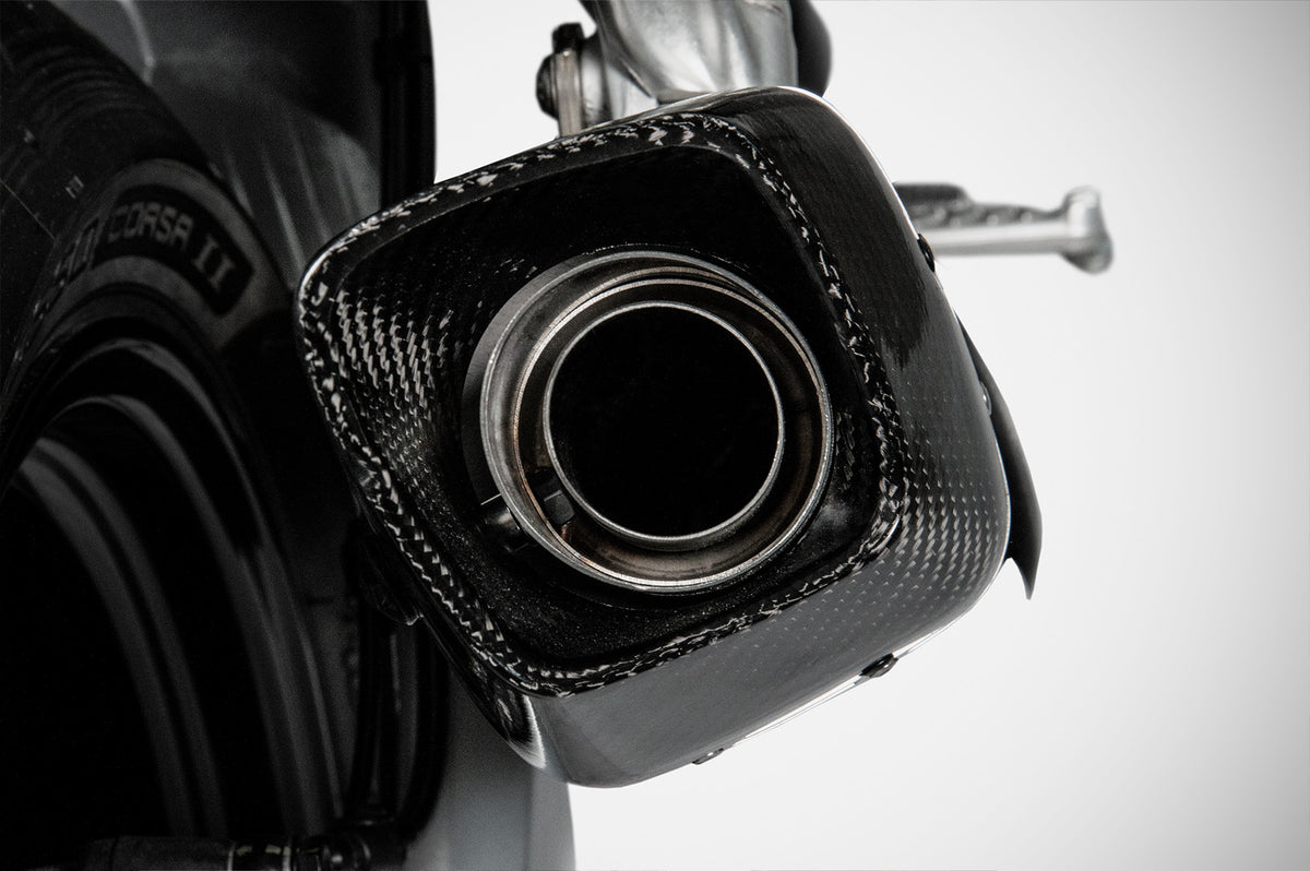 The full exhaust kit for the Aprilia RS 660 / Tuono 660, an iconic bike known for its balance and performance, reaches new heights with the Zard Full Kit. Designed for those seeking the best on both road and track, it is handcrafted in Italy using premium materials: headers made of AISI 304 stainless steel, a titanium silencer, and a carbon fiber end cap. Available in both racing and Euro 5 homologated versions. The racing version, designed for track use, delivers an open and thrilling sound (93 dB @ 5250 rpm), with a significant weight reduction of -2.2 kg (4.8 lbs) compared to the stock exhaust. The result is a more responsive bike, with improved acceleration and enhanced handling dynamics, all amplified by the signature Zard sound. The Euro 5 homologated version, suitable for everyday road use, also benefits from a reduced weight of -2.1 kg (4.6 lbs), offering a deep yet road-legal tone and a compact, sporty design. The RS/Tuono 660's full kit does not require any ECU remapping, is easy to install, and ready to ride right away. An upgrade that blends performance, lightness, and style with no compromises.