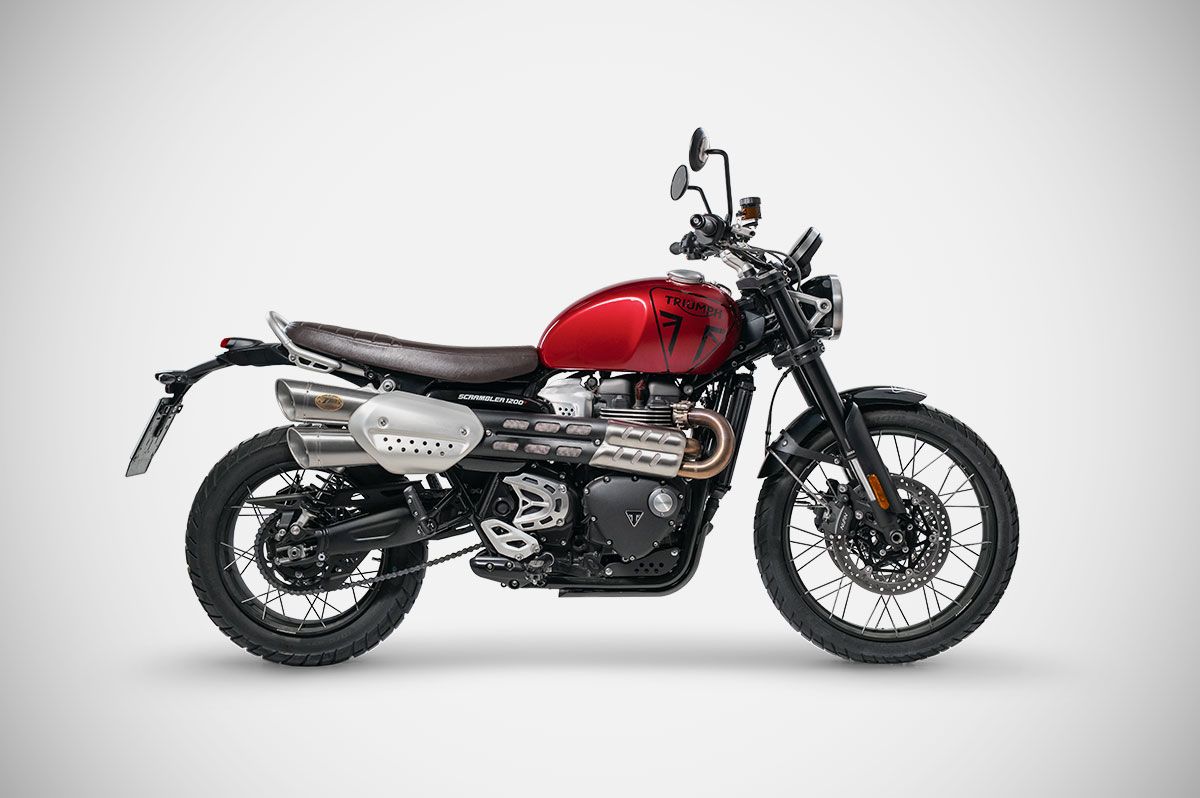 The High mounted Slip-ons for the Triumph Scrambler 1200 are entirely designed and handcrafted in Italy from high-quality AISI 304 stainless steel. This racing exhaust system, which includes silencers with a satin finish or Cerakote black and steel or carbon fiber end caps, stands out for its lightness (-3.7 kg (-8.2 lbs) compared to the stock exhaust system) and a performance increase (+1.5 HPcompared to the stock exhaust system). The unique design and high mounting position, featuring the bronzed or steel Zard logo, are complemented by the energetic, unmistakable sound typical of Zard. The exhaust for the Triumph Scrambler 1200 is easy to install and ready to use immediately. Warning: After installing ZARD slip-ons, the motorcycles electronics in E5 Plus configuration may detect a catalytic converter anomaly due to emission regulations, causing the catalyst warning light to turn on (informative). To prevent this warning light from activating, it is necessary to remap the ECU. Compatibility: SCRAMBLER 1200 X - SCRAMBLER 1200 XE Optional: SoundGuard DB Killer
