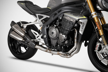 The link pipe is made of AISI 304 stainless steel and is required to use the 3-into-1 racing headers with the Zard slip-on silencer in the Euro 5 homologated version. NOTE: the kit includes the HEALTECH ESE-T03 exhaust valve eliminator, which prevents ECU error signals. Zard offers the dedicated UpMap ECU to the Speed Triple 1200 RS/RR products, tailor-made to ensure a significant performance increase.
