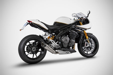 The Slip-On for the Triumph Speed Triple 1200 RS/RR is the perfect choice for those seeking high performance, exclusive design, and a powerful, distinctive sound. Entirely handmade in Italy by Officine Italiane Zard, this exhaust system represents Italian artisanal excellence. The silencer is made of AISI 304 stainless steel with a titanium sleeve and a standard carbon fiber end cap, offering an exclusive and sporty look. This system delivers an aggressive and deep sound, perfectly in tune with the spirit and power of the Speed Triple 1200 RS/RR, with a phonometry of 105 dB at 5375 rpm. Its refined and compact design harmonizes with the muscular lines of the bike, adding character and personality. Available only in racing version. The Zard kit helps improve the bikes agility and responsiveness by reducing the overall weight by -0.7 kg (-1.5 lbs), bringing it down to just 2.4 kg (5.3 lbs), and optimizing performance. Installation is easy and requires no modifications to the vehicle. Note: the racing silencer includes the HEALTECH ESE-T03 exhaust valve eliminator, which prevents error signals in the ECU. Zard offers the dedicated UpMap ECU to the Speed Triple 1200 RS/RR products, tailor-made to ensure a significant performance increase.