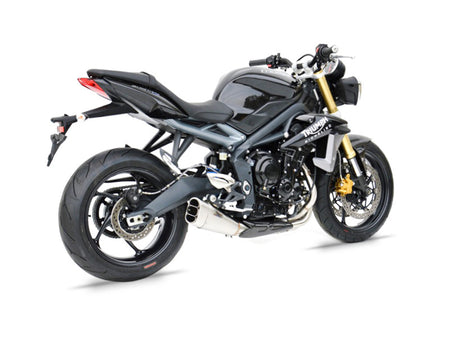 The "Short"racing slip-on for the Triumph Street Triple 675 is entirely designed and handcrafted in Italy using AISI 304 stainless steel. This slip-on, made of AISI 304 stainless steel, with a stainless steel sleeve and end cap available in either stainless steel or carbon fiber, features a compact and sporty design that enhances the aggressive profile of the Street Triple 675. Designed for racing use, the system provides a significant weight reduction compared to the stock exhaust, along with an improvement in performance in terms of torque and power. Available in either satin or black finish. The kit includes the muffler and all necessary components for installation, delivering a full and exciting sound with the unmistakable Zard tone. The racing slip-on for Triumph Street Triple 675 is easy to install and ready for track use. NOTE: It is possible to match the carbon fiber end cap with either finish.
