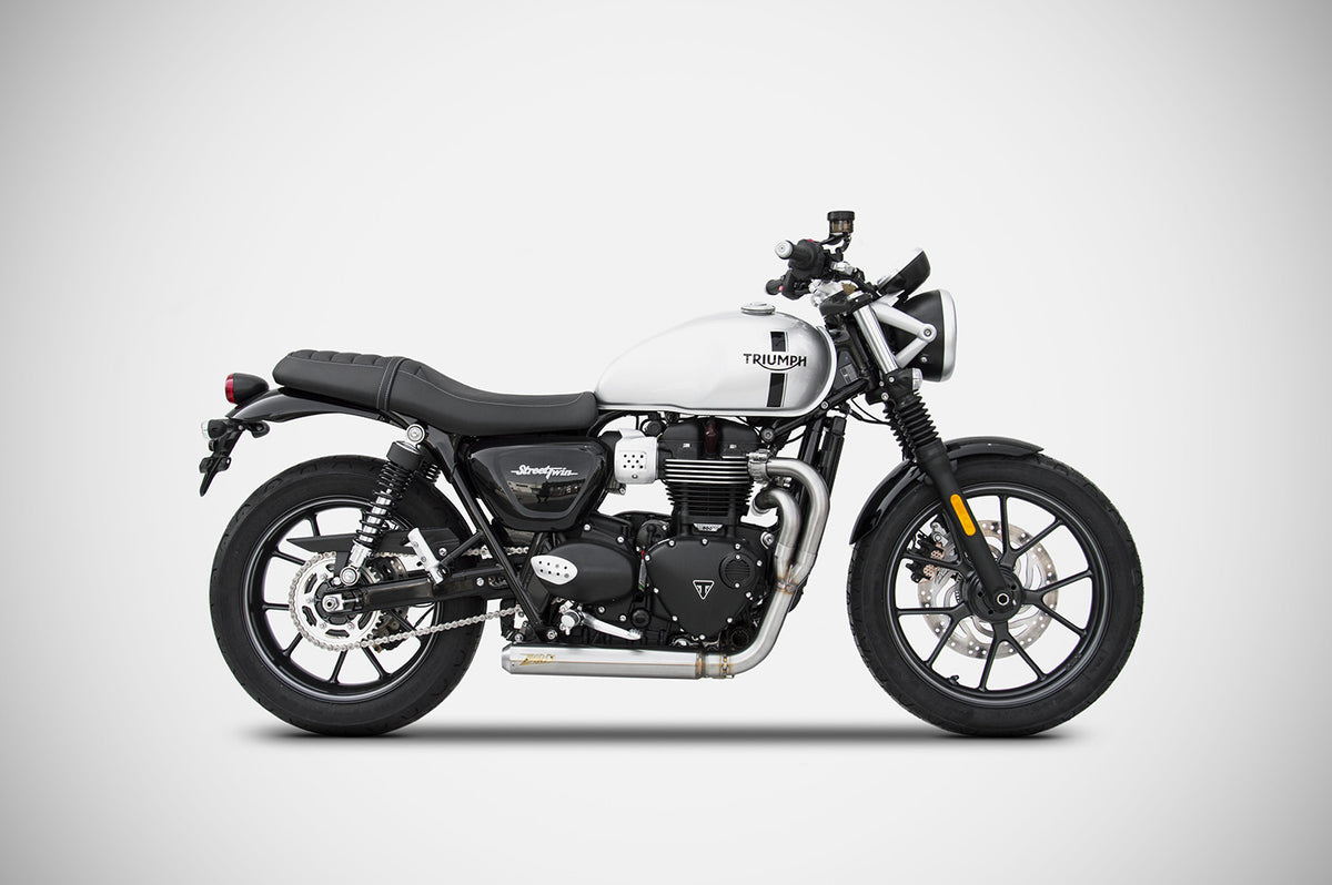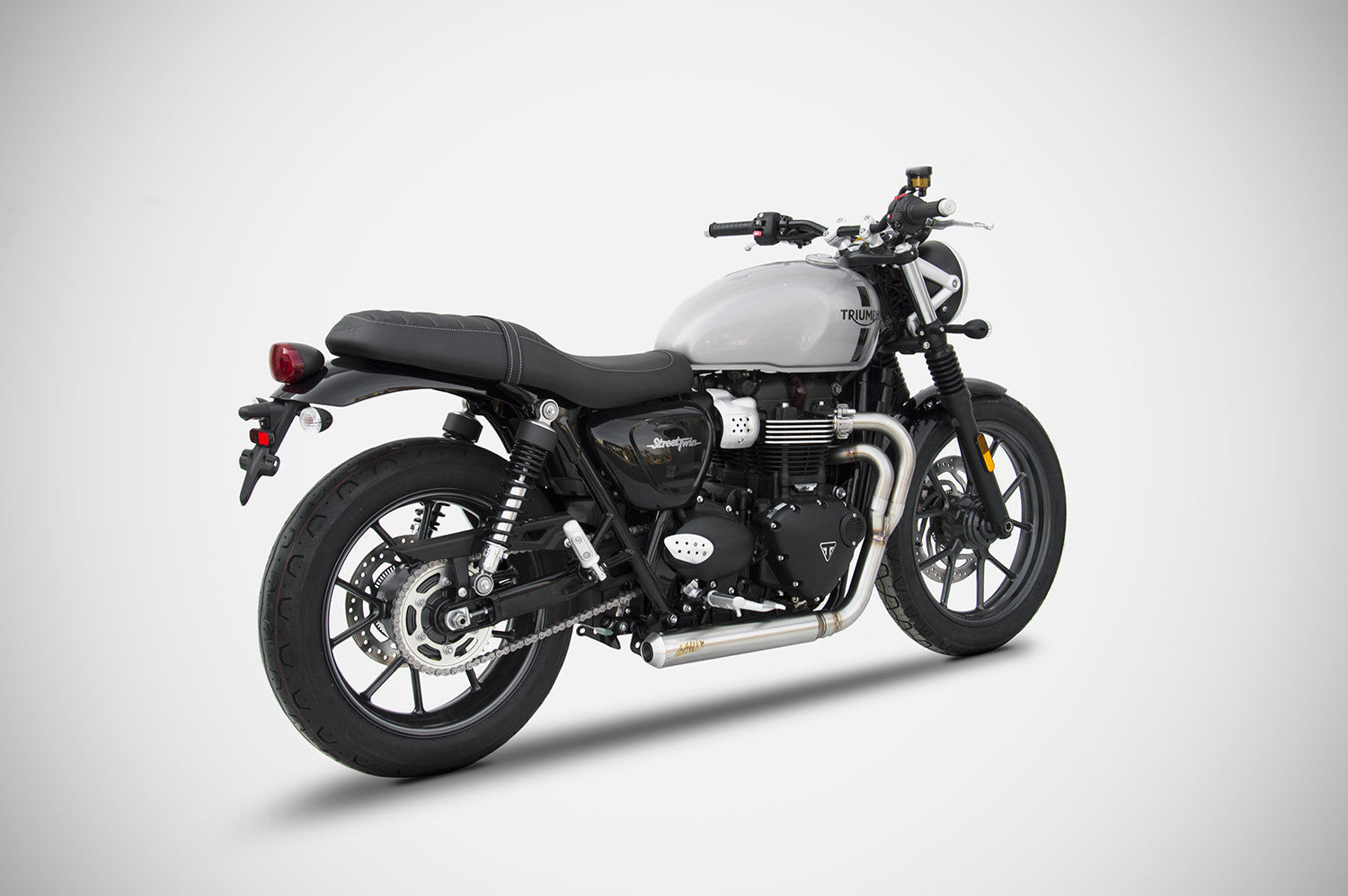 The "Cross" Full Kit for the Triumph Street Twin 900 is the perfect choice for those seeking maximum performance, style, and handcrafted quality. Designed and built by Officine Italiane Zard, this system significantly enhances the bikes responsiveness and character, turning every ride into an exciting experience. Entirely handmade in Italy, the system consists of a 2-into-1 header and silencer made of AISI 304 stainless steel, with sleeve and end cap in stainless steel. The kit is available in a brushed or black finish. With a significant increase in power and a total weight of just 3.1 kg (6.8 lbs), the Zard Full Kit is much lighter than the stock system, resulting in a weight savings of -12.1 kg (-26.7 lbs). This translates into a more agile and responsive ride in all conditions. The system is designed to deliver a deep and powerful sound. The kit is not approved for road use. NOTE: the kit requires removal of the original catalytic converter Compatible with Triumph Speed Twin 900 and Street Twin 900 20162023