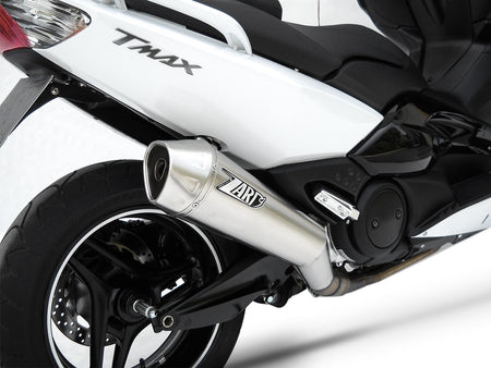 The full exhaust kit for the Yamaha TMAX is designed for those seeking a bold sound, improved performance, and refined design. The Zard Full Kit, handcrafted and 100% Made in Italy, uses premium materials: sleeve available in AISI 304 stainless steel or titanium, with astainless steelstructure and end cap. It is available in a racing version (with a removable dB-killer) and features an exclusive black or satin finish. The stainless steel-titanium version weighs just 2.1kg (4.6lbs), with a weight saving of 6.1kg (13.4lbs) compared to the original 8.2kg exhaust. The full stainless steel version weighs 3.5kg (7.7lbs), with a weight saving of 4.7kg (10.4lbs). In both configurations, the reduced weight makes the scooter more responsive and agile, enhancing the riding experience. The Zard sound is deep, full-bodied, and performance-oriented, designed to enhance every corner and acceleration without compromise. Thanks to its refined design and premium materials, the kit offers a modern yet elegant look that perfectly integrates with the lines of the TMAX. Installation is quick and plug & play, requiring no ECU remapping or modifications.