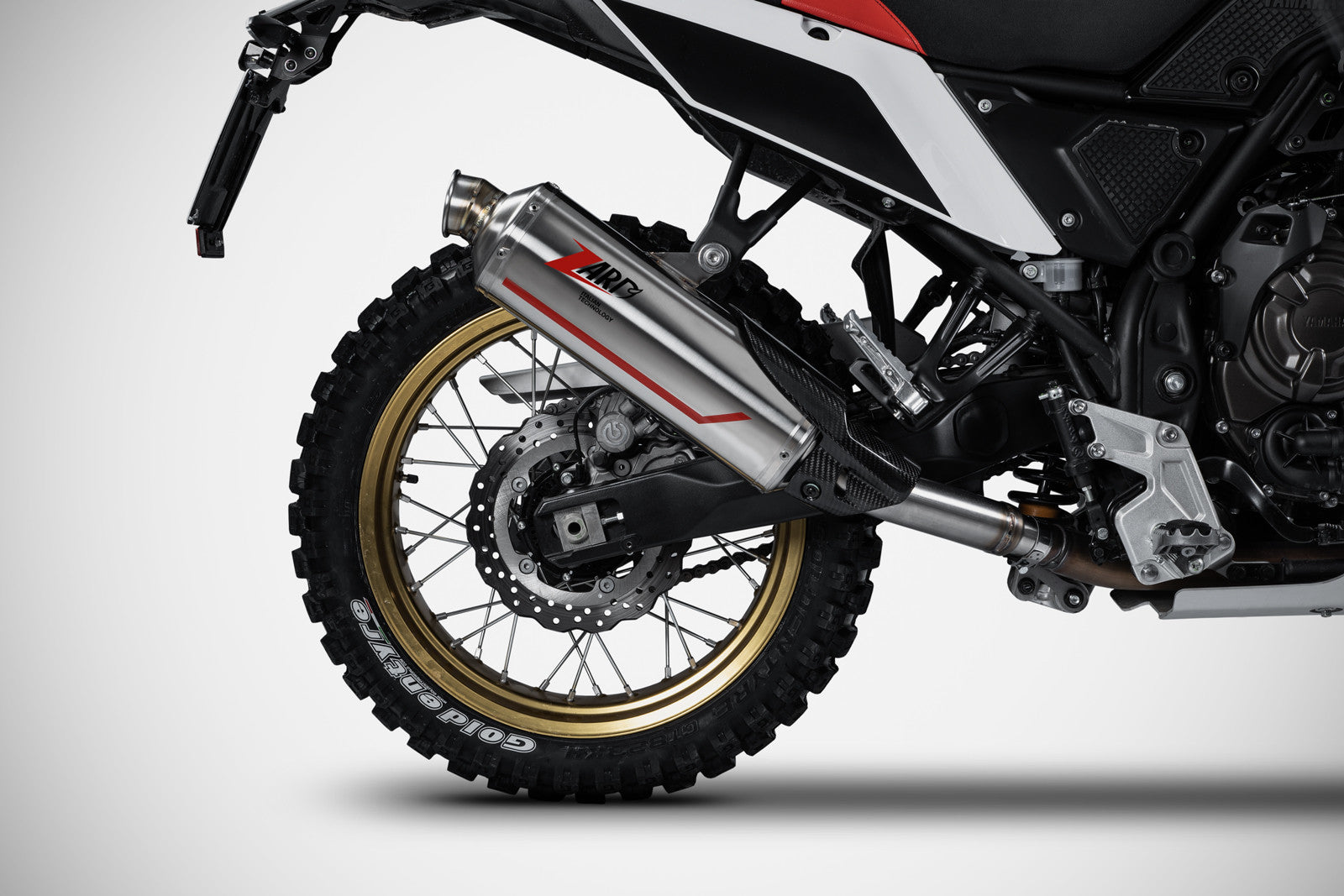 The Zard Sabbia slip-onfor the YamahaTnr 700 represents the perfect blend of rally-raid-inspired design and cutting-edge technology. Sabbia is the Zard collection dedicated to the YamahaTnr 700, Ducati Desert X and Aprilia Tuareg 660, inspired by the world of African rally raids and defined by a modern, innovative design. Handcrafted inItaly from AISI 304 stainless steel, the slip-on comes standard with a carbon fiber heat shield. It is available in bothracingor E5 homologated version. Weight is significantly reduced from 7 kg for theOEM exhaust to just 3.2 kg for thehomologated version and 2.8 kg for the racingversion, improving handling. The power increase is+1.8 HP for theracingversion and +1.1 HP for the homologatedone. The exclusive design of the Sabbia, distinguished by the red line and Zard logo screen-printed with heat-resistant paint, is the result of a close collaboration between Zard's Centro Stile and the R&D team, drawing inspiration from the great African rally raids. Designed for enduro-touring bikes from 650cc to 1000cc, it integrates perfectly with the Yamaha Tnr, delivering a bold, adventurous look and the unmistakable Zard sound. The slip-on for the Yamaha Tnr 700 does not requires ECU remapping, is easy to install and is ready to useright out of the box.