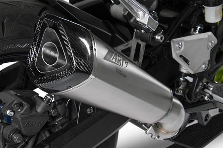 The Zard Titanium Slip-On for the Kawasaki Z900 is the perfect solution for those seeking improved performance, reduced weight, and a sporty, expressive sound. Handcrafted in Italy by Zard, this exhaust combines exclusive design, premium materials, and meticulous attention to detail. The silencer is made of titanium, with a carbon fiber end cap and titanium structure, offering a lightweight build and sporty look. The kit includes a removable dB-killer, allowing quick adaptation for either daily use or track riding. The system delivers a deep and aggressive sound that enhances the Z900s character. It is available in both racing and Euro 5 homologated versions, offering a sound level of 98 dB @ 4750 RPM. The Zard Slip-On improves the bikes performance and agility, weighing just 1.4 kg (3.1 lbs) compared to the 3.5 kg (7.7 lbs) of the stock exhaust, for a total weight saving of 2.1 kg (4.6 lbs). Installation is quick and plug & play, with no ECU remapping required. Made in Italy the ideal Slip-On for your Kawasaki Z900. NOTE: Carbon heat shield available as an optional accessory.